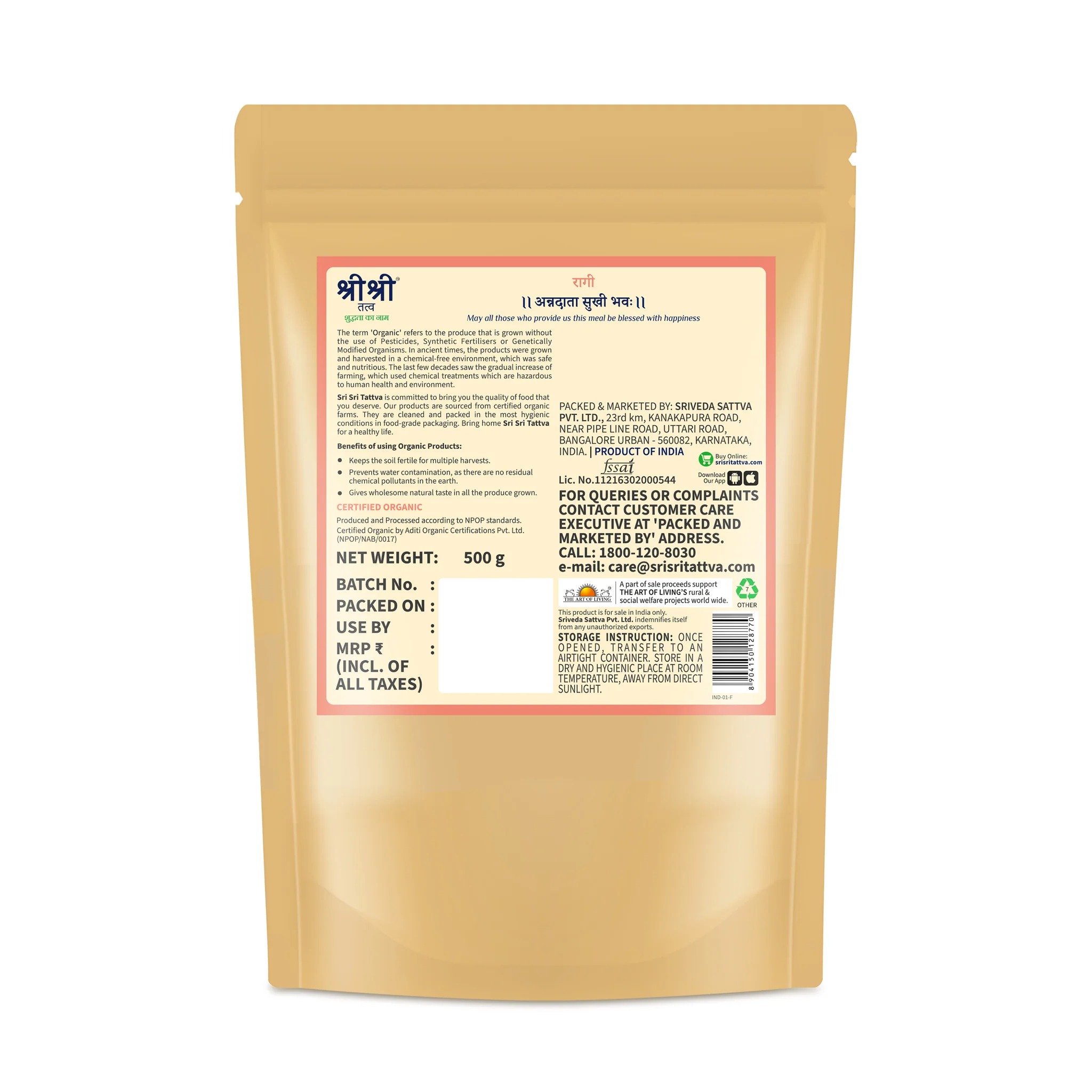 Sri Sri Tattva is committed to bring you the quality of food that you deserve. Our products are sourced from certified organic farms. They are cleaned and packed in the most hygienic conditions in food-grade packaging. Bring home Sri Sri Tattva for a healthy life.